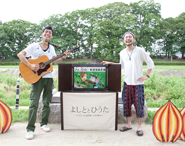 絵本作家よしととシンガーソングライターのひうたによる絵本と音楽のコラボレーションライブ。現代版新感覚紙芝居です。